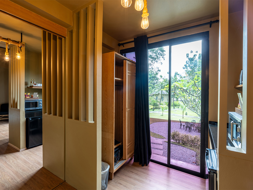 Studio Deluxe 2 Bedrooms is ideal for families or groups of up to six with a connecting door between two standard rooms. Only a few steps out of the room, guests can indulge in a great view of the mangrove beach against the mountains adorned by the Big Buddha. Situated at the centre, guests are entitled quick access to hotel’s facilities, whether it be the infinity salt water pool, organic spa or the M Cafe & Bistro.